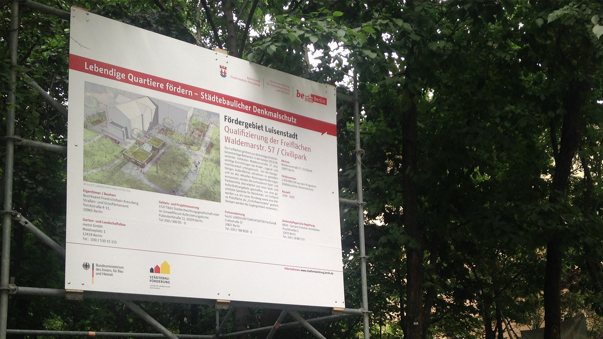 Auf dem denkmalgeschützten Bethaniengelände in Berlin-Kreuzberg werden die Außenanlagen des ehemaligen Feierabendhauses in der Waldemarstraße für die Nutzer qualifiziert.
