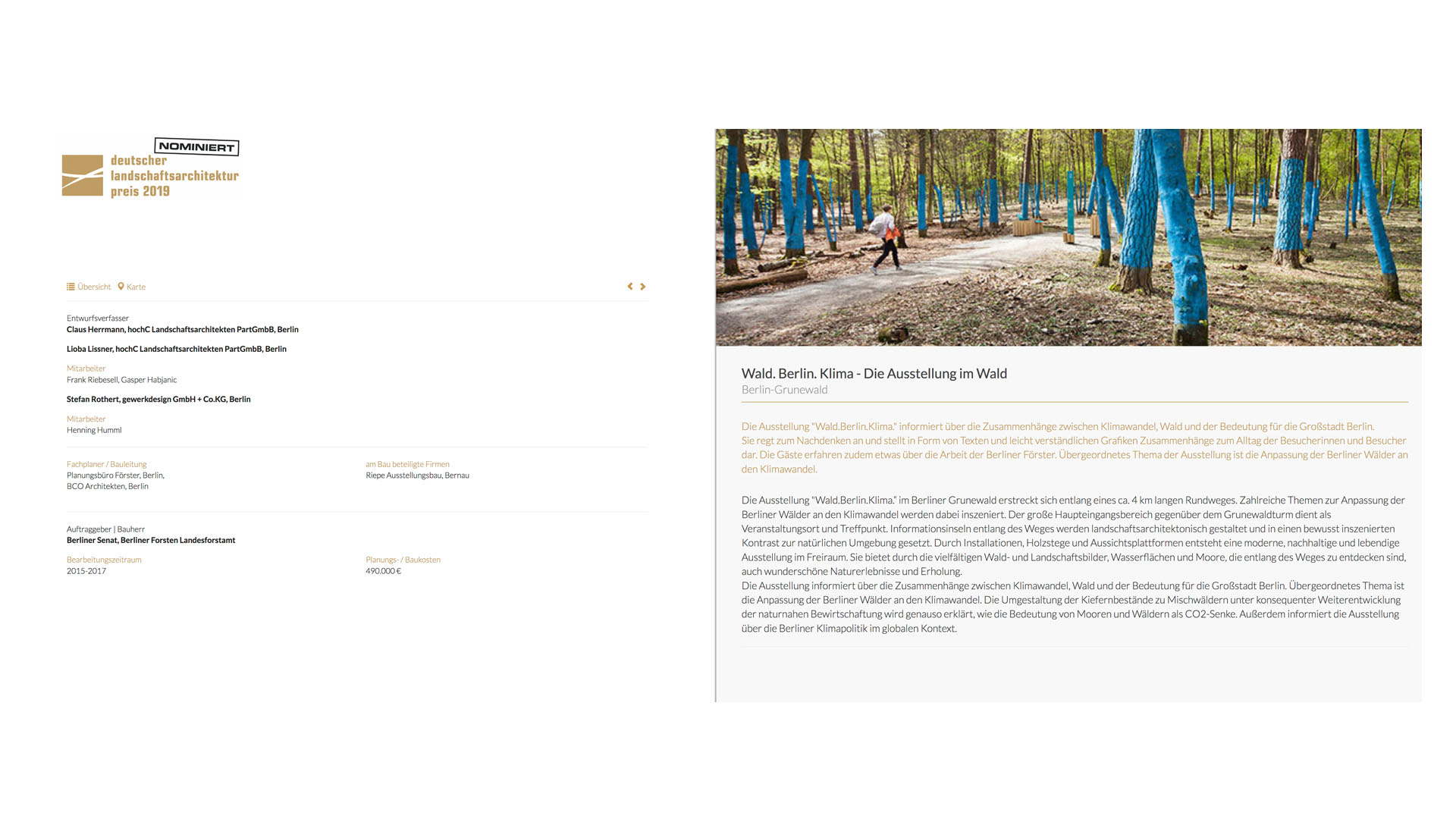 Wir sind mit dem Projekt "Wald. Berlin. Klima - Die Ausstellung im Wald“ für den Deutschen Landschaftsarchitekturpreis 2019 dabei!