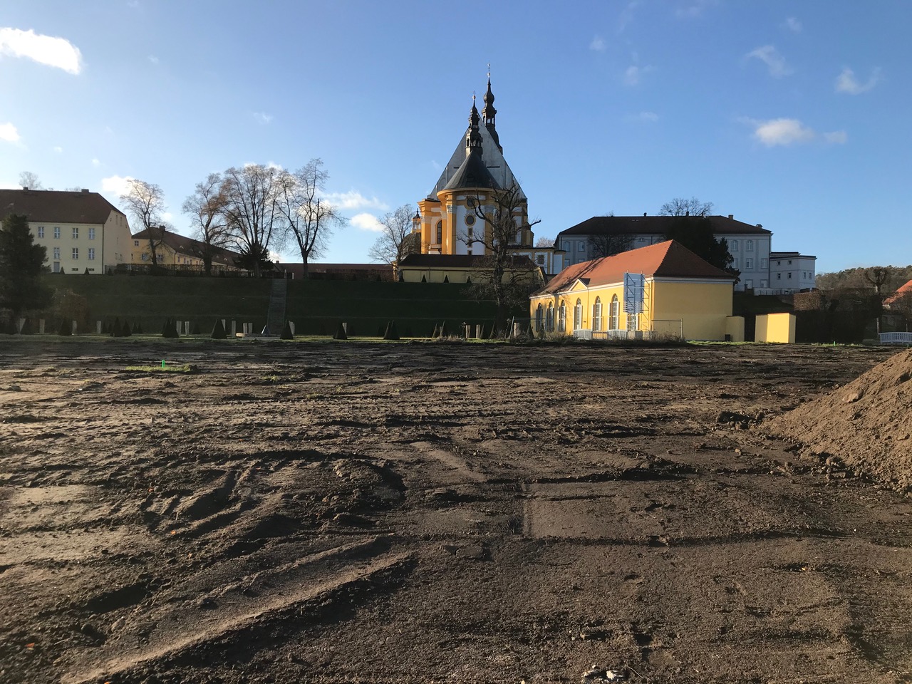 Winterliche Stimmung in den Klostergärten Neuzelle - Die Baustelle ruht nun ersteinmal bis ins neue Jahr.