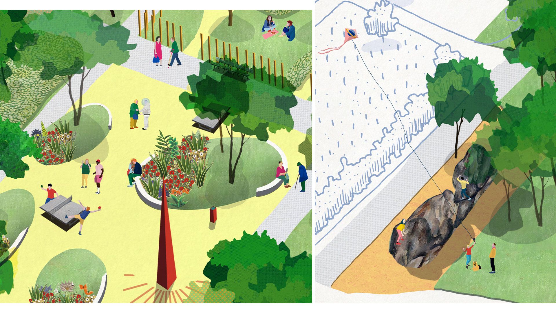 Hier geht´s zum Projekt: Zentraler Grünzug KOSMOSVIERTEL