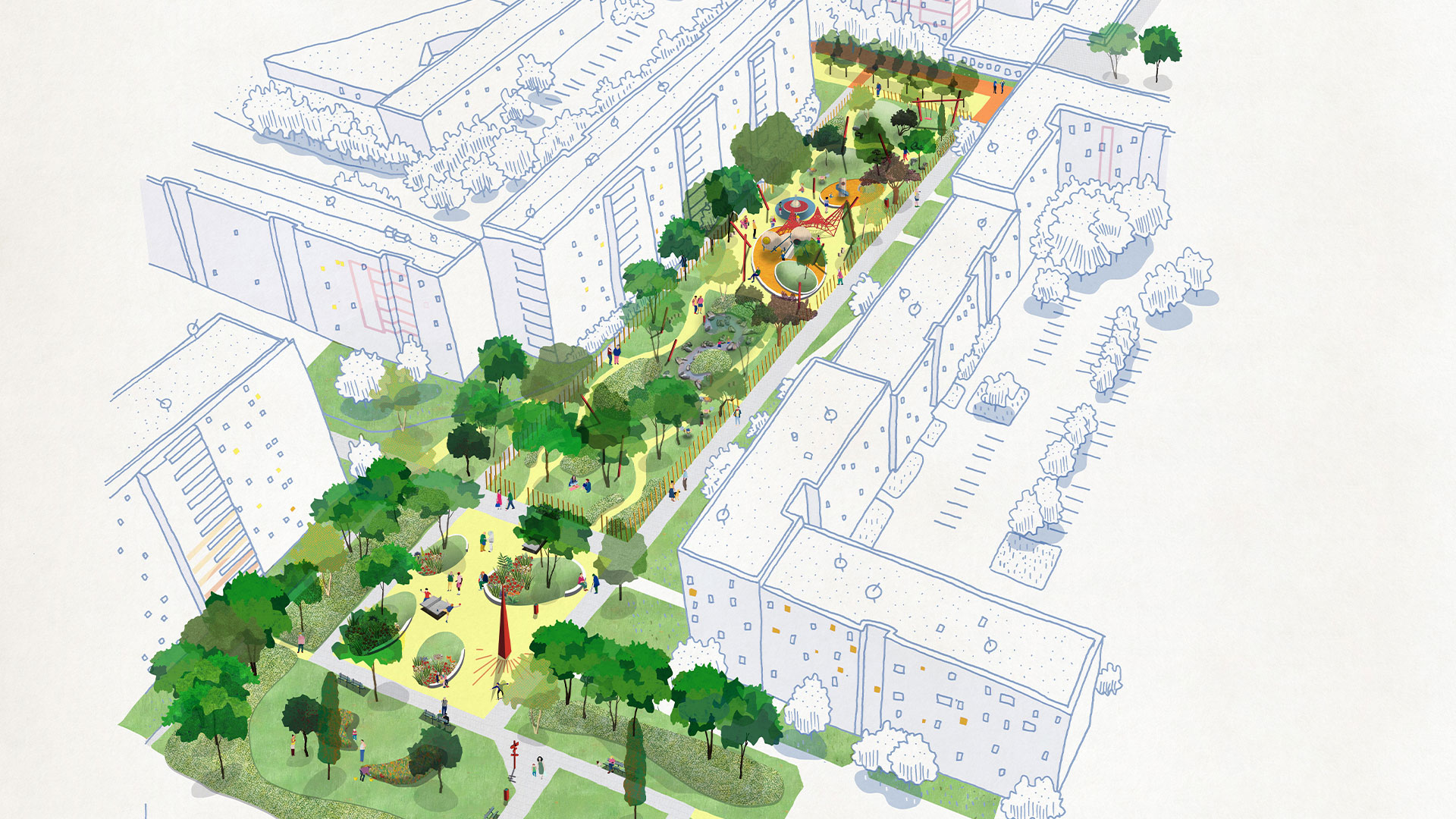 Hiermit ist unser fünfstufiges, konsultatives Beteiligungsverfahren zur Umgestaltung des zentralen Grünzuges im Kosmosviertel abgeschlossen.