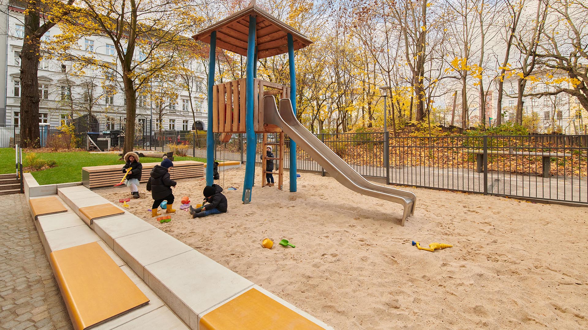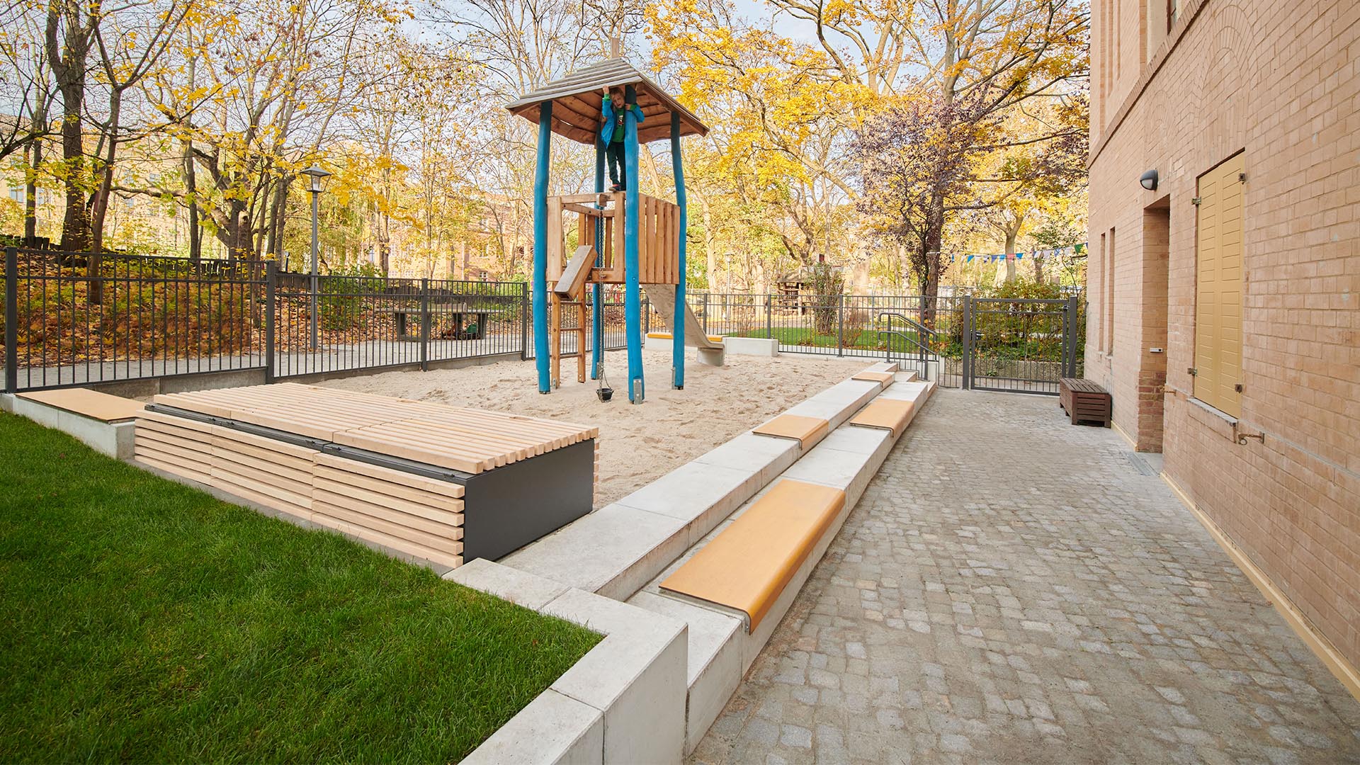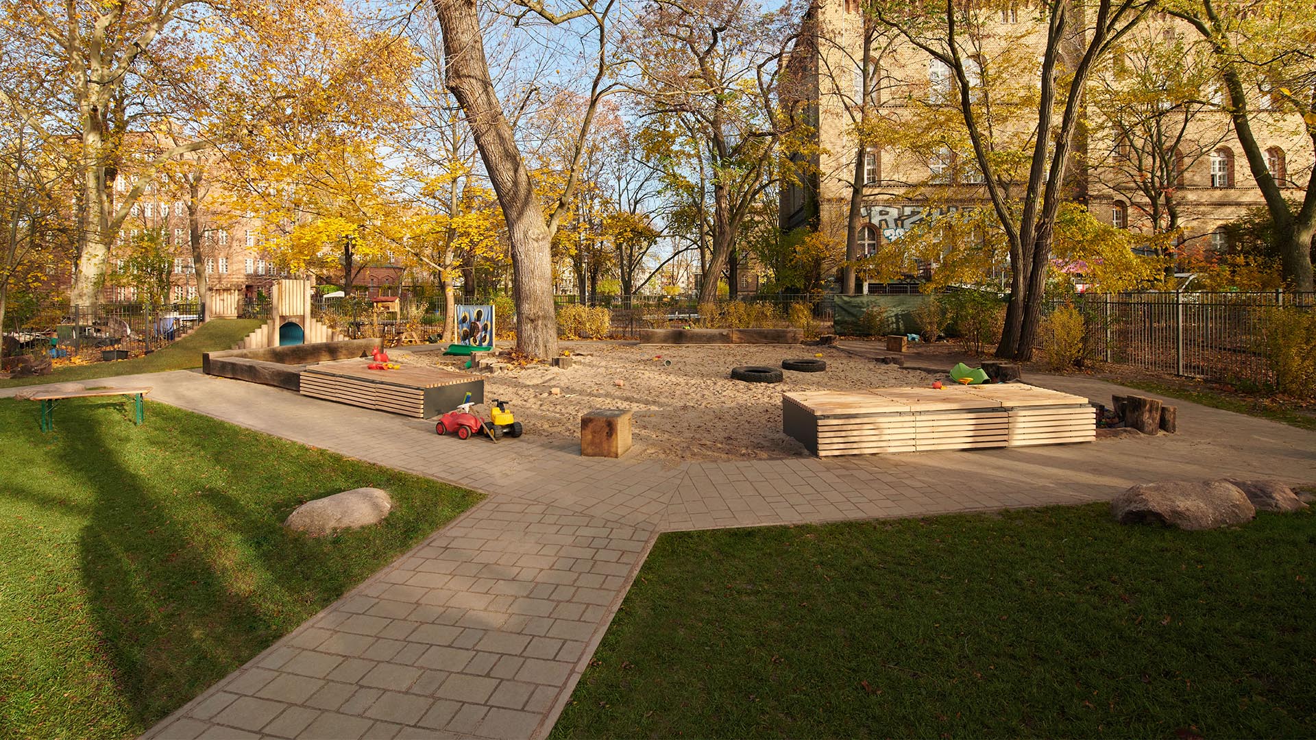 Die bearbeiteten Freiflächen umgeben das ehemalige Diakonissen-Feierabendhaus (Waldemarstr. 57), das heute wichtige Einrichtungen der Kinder- und Jugendarbeit beherbergt. Sie dienen als nutzbare Freiflächen für die im Gebäude ansässigen Einrichtungen und unterliegen vielfältigen Nutzungsanforderungen. Das Kinderhaus Waldemar, die Kindertagesstätte Florian und der Civilipark / NaunynRitze nutzen das Außengelände täglich mit ihren Kindern. Die Umsetzung der Baumaßnahme erfolgt im laufenden Betrieb der beiden Kitas und der Jugend-Freizeiteinrichtung.