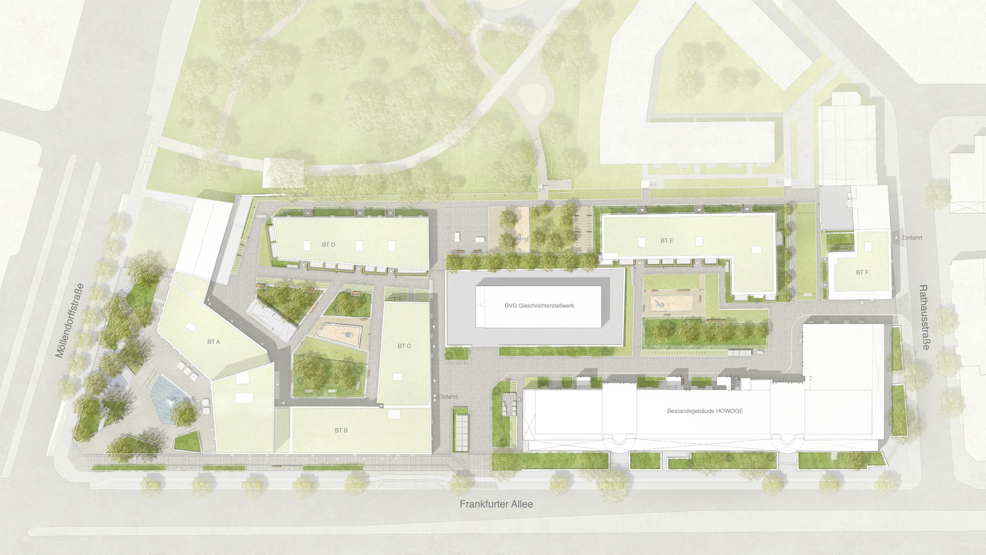 Gestaltung der Freianlagen für ein neues Wohnquartier am Rathausplatz, Frankfurter Allee 135
