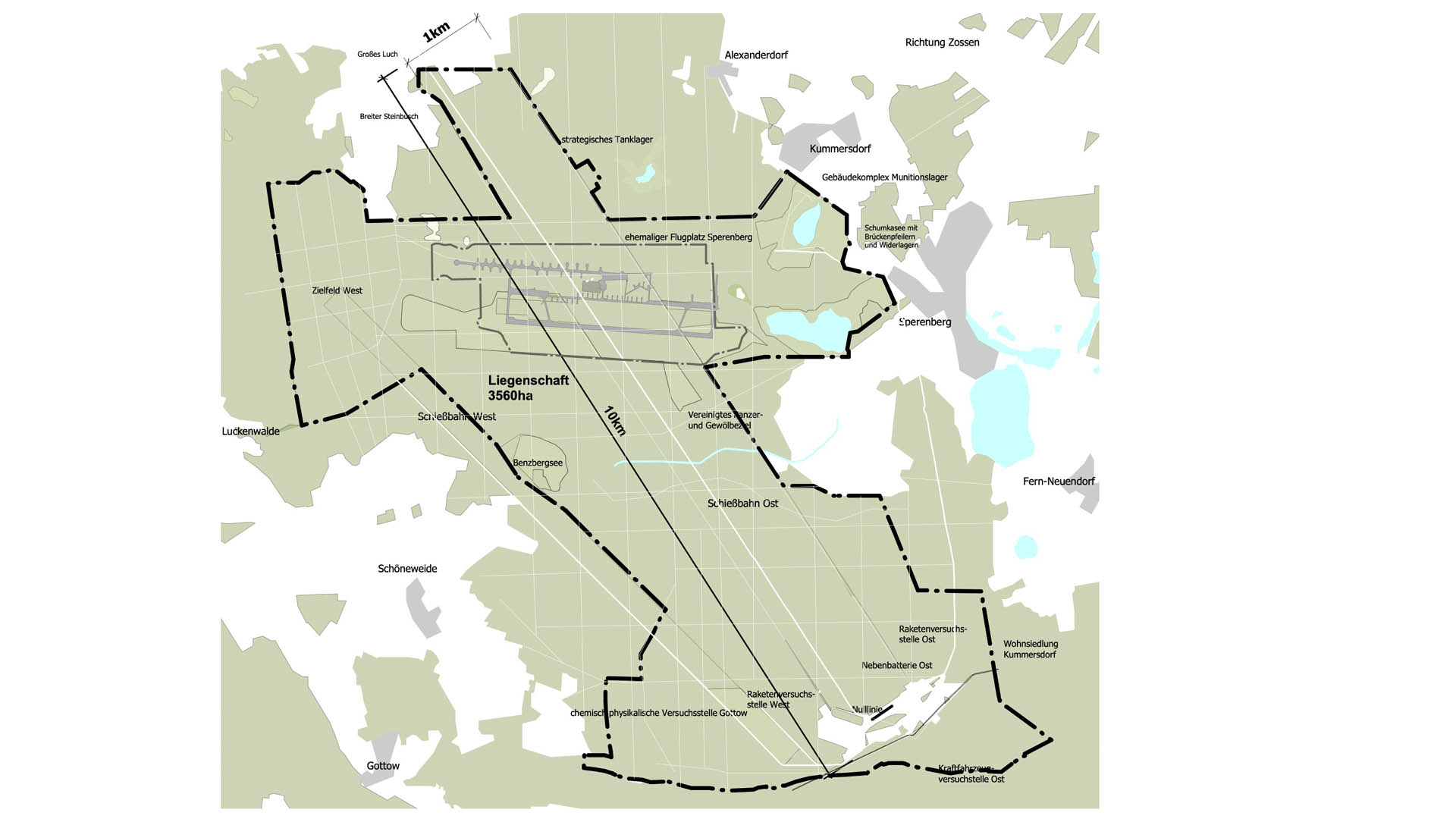 Für die Gesamtfläche mit einer Größe von 36 km2 wurde von der BImA die Erarbeitung des Entwicklungskonzepts für eine sinnvolle Nachnutzung der Liegenschaft in Auftrag gegeben. Das Entwicklungskonzept sieht eine gemeinsame Gesamtentwicklung der Liegenschaft unter besonderer Beachtung der energiepolitischen Ziele der Bundesregierung und der Regierung des Landes Brandenburg vor. Zudem wird eine räumliche und inhaltliche Verzahnung der Nutzung Erneuerbarer Energien mit den Anforderungen an eine zugängliche Denkmallandschaft angestrebt.