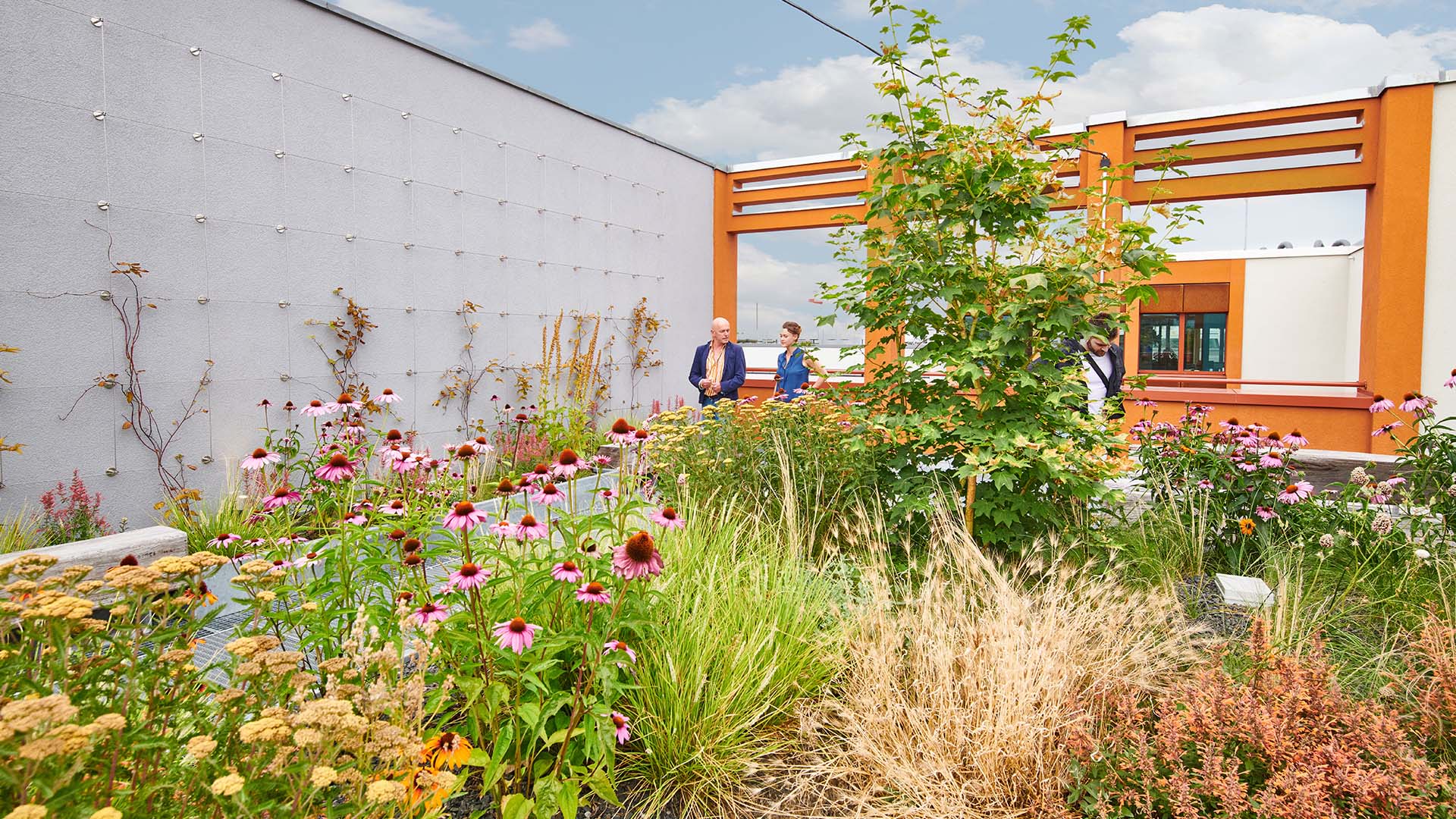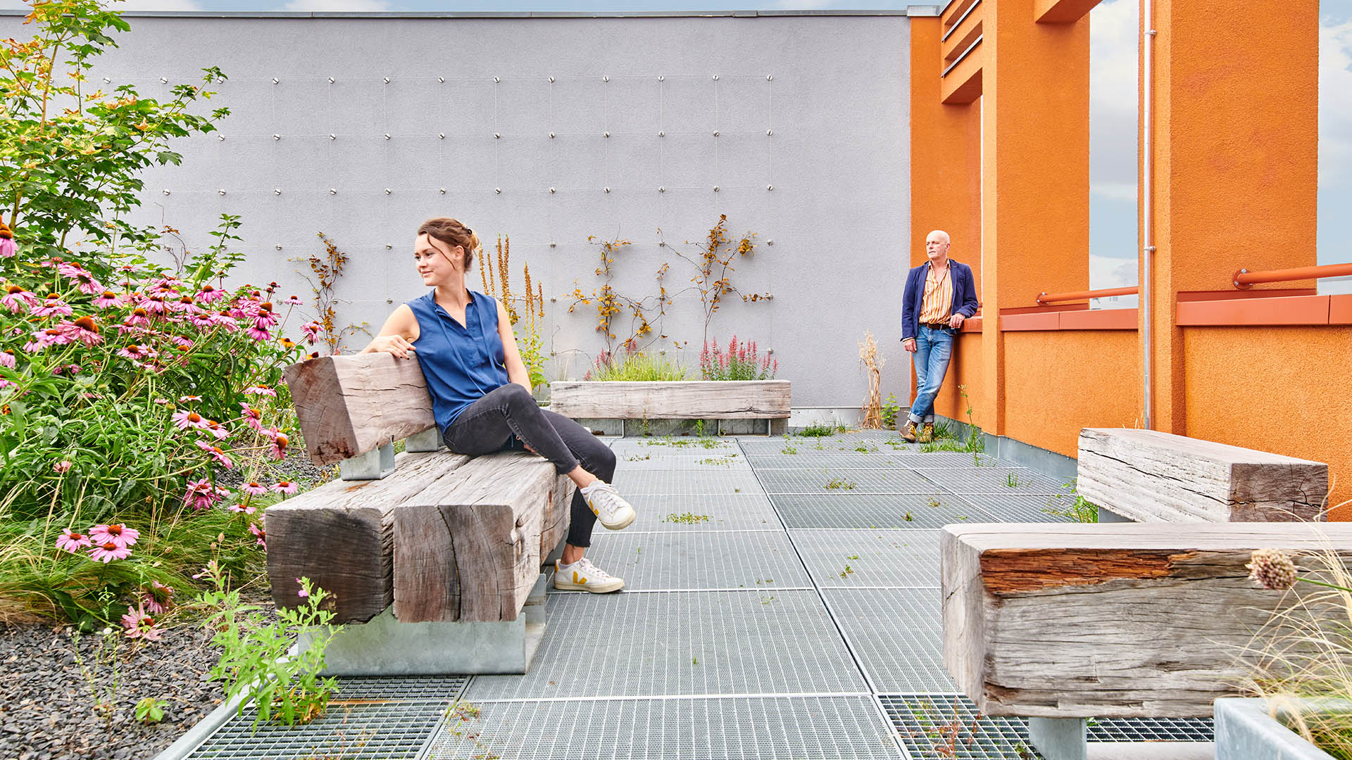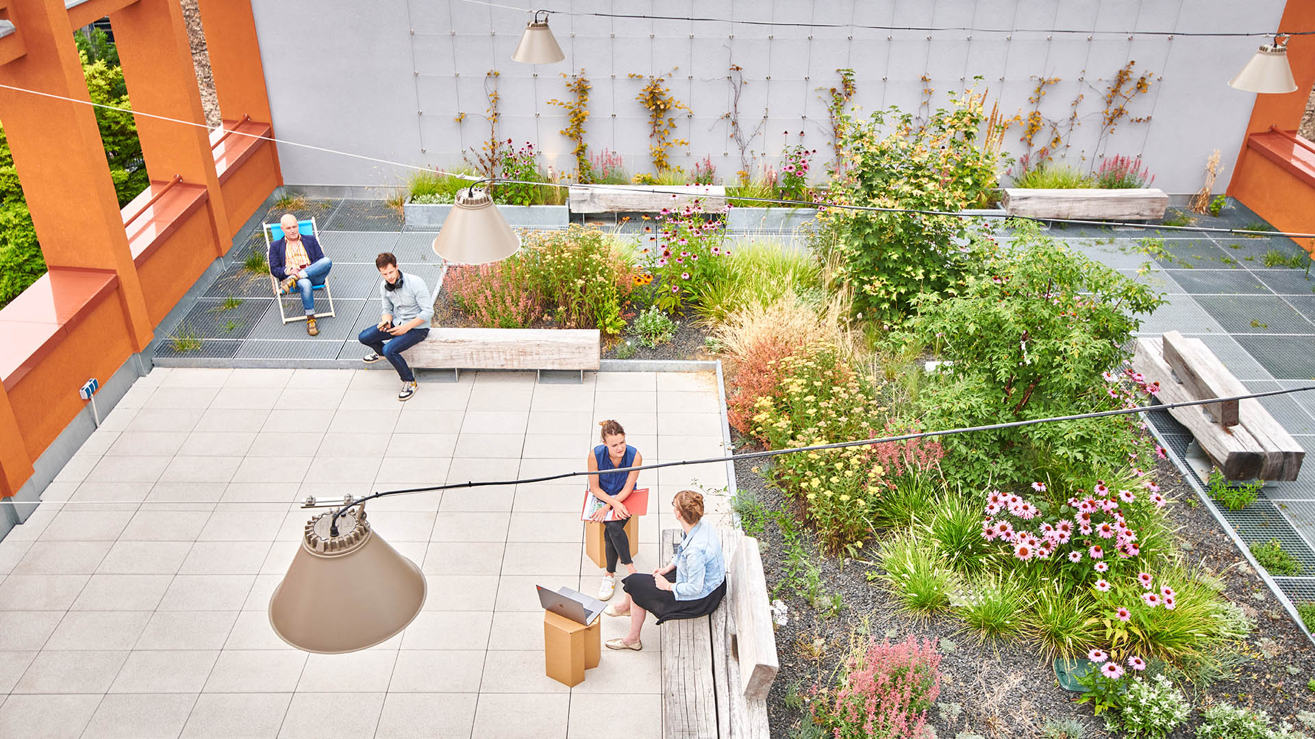 Gestaltung der Dachterrasse eines Gewerbegebäudes