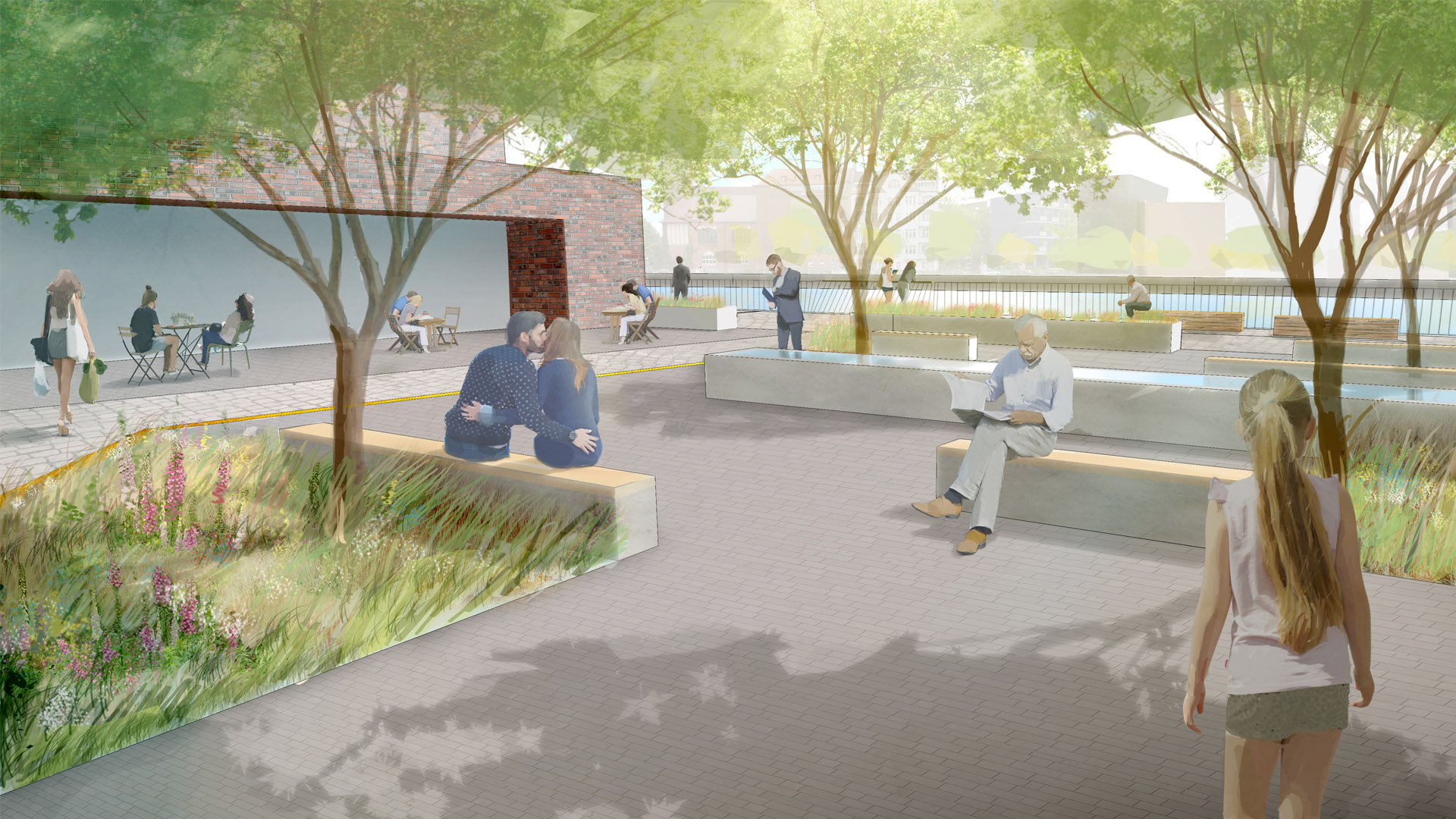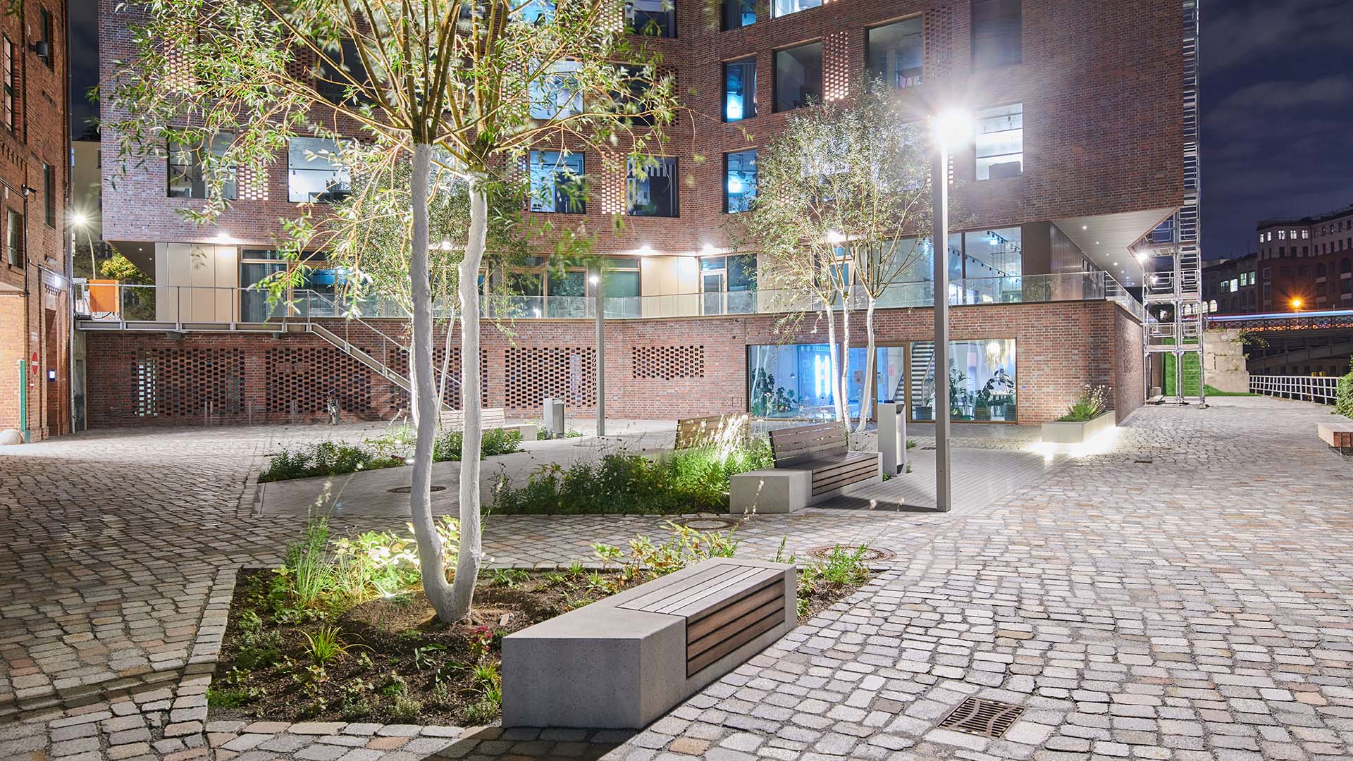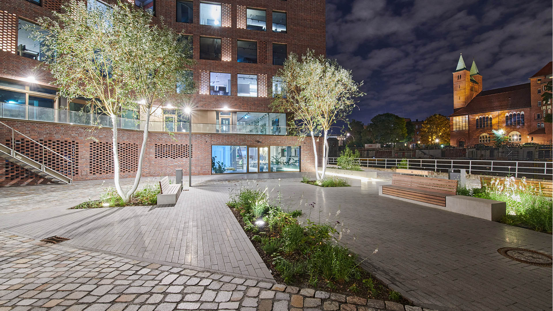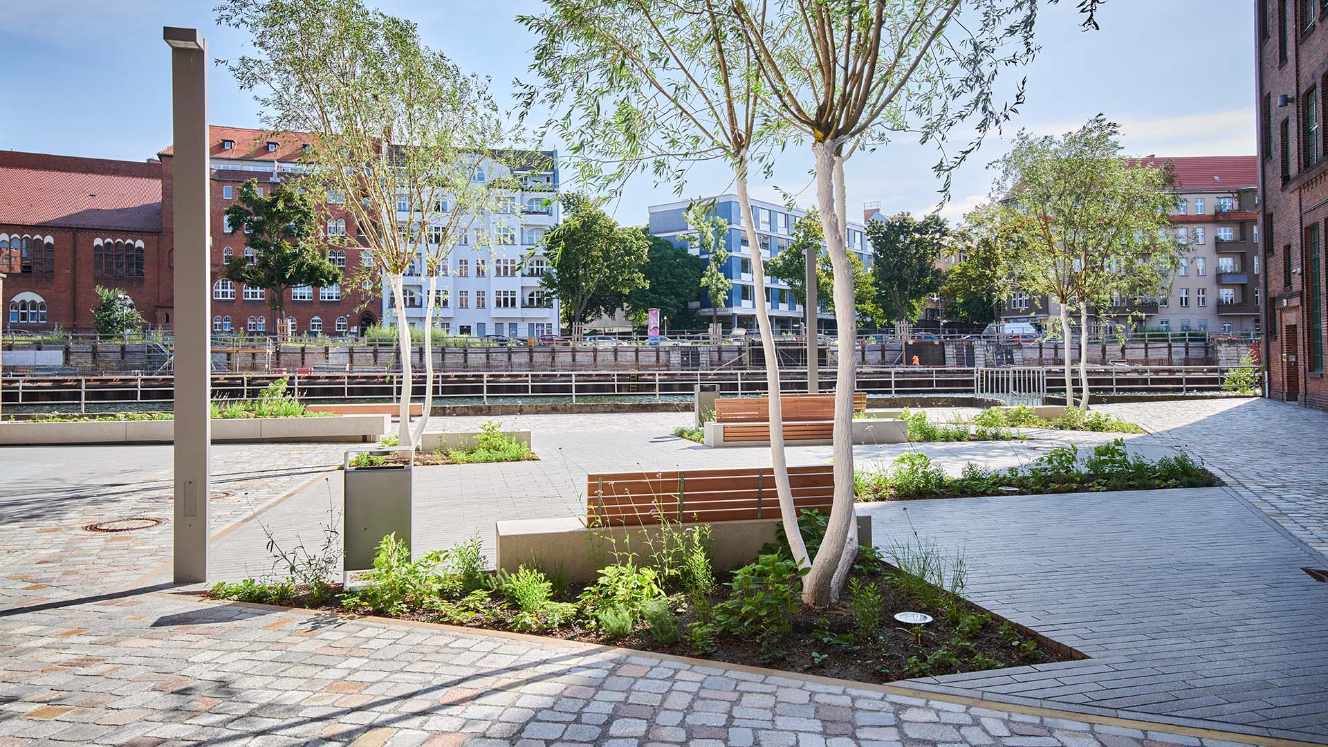 Der Freiraum des neu entstehenden Bürogebäudes ‚The Benjamin’ ist Teil eines Gesamtkonzeptes der Neu- und Umgestaltung der Gebauer Höfe- er bildet den Auftakt des Geländes.