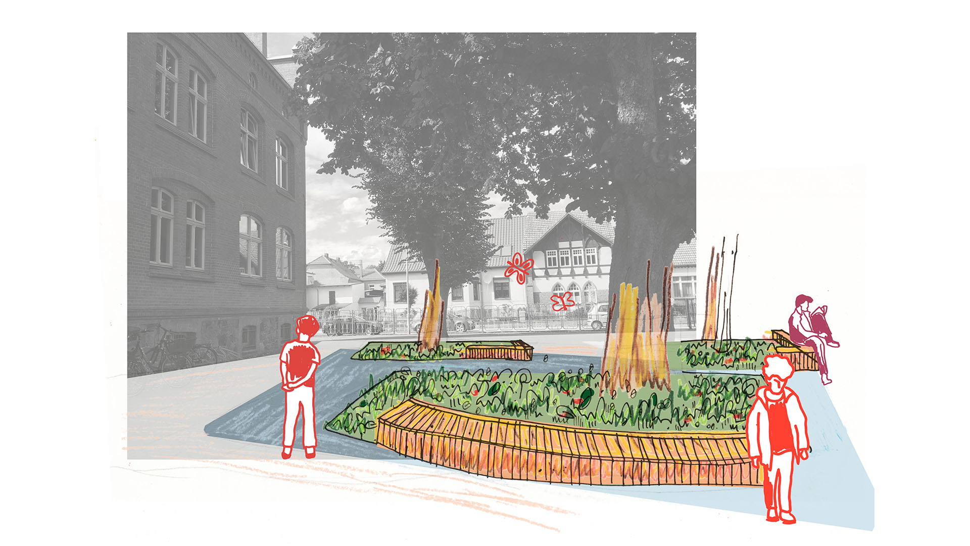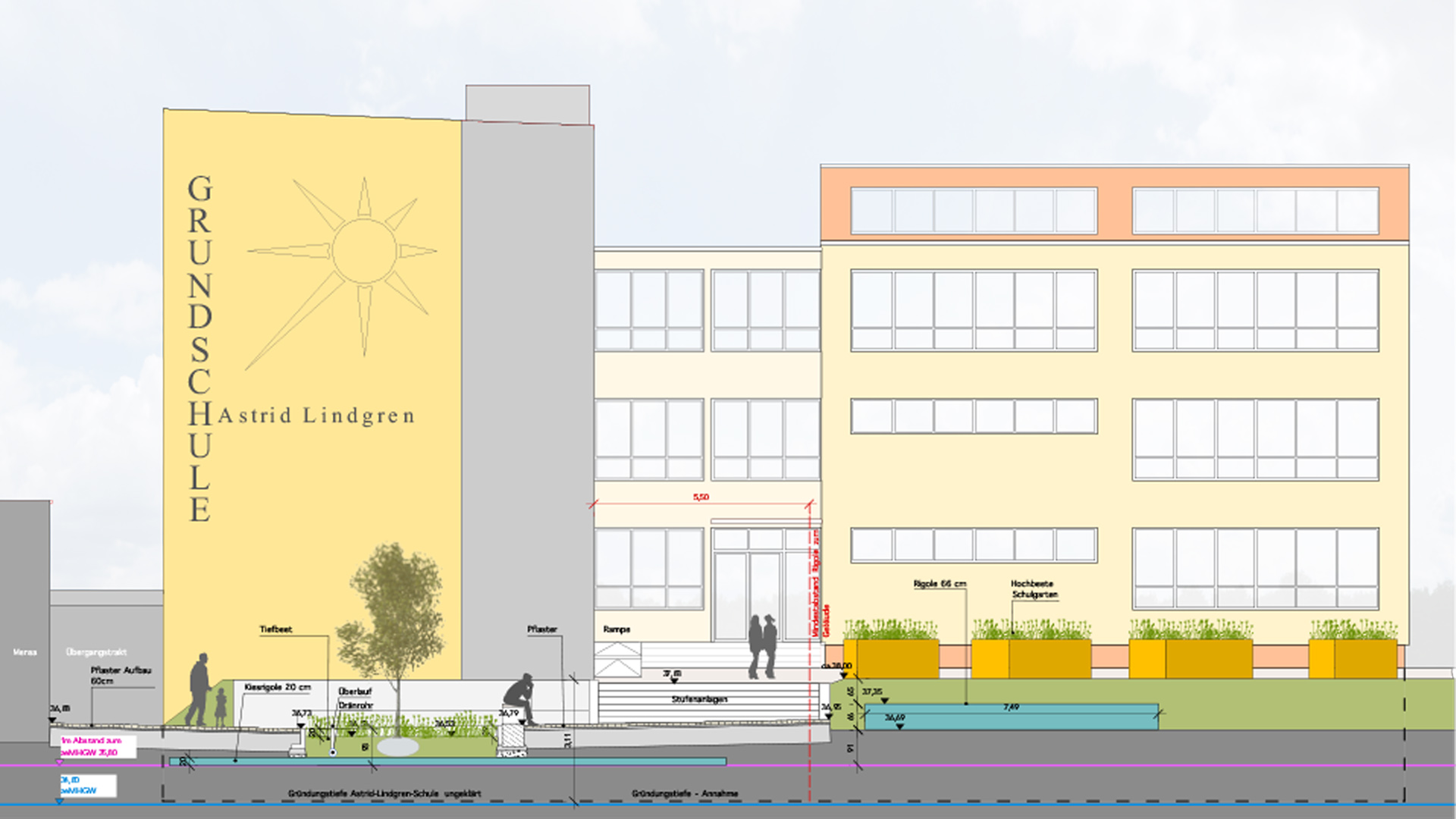 Im Westen der Schule wird ein Schulgarten in Form von Hochbeeten geplant.