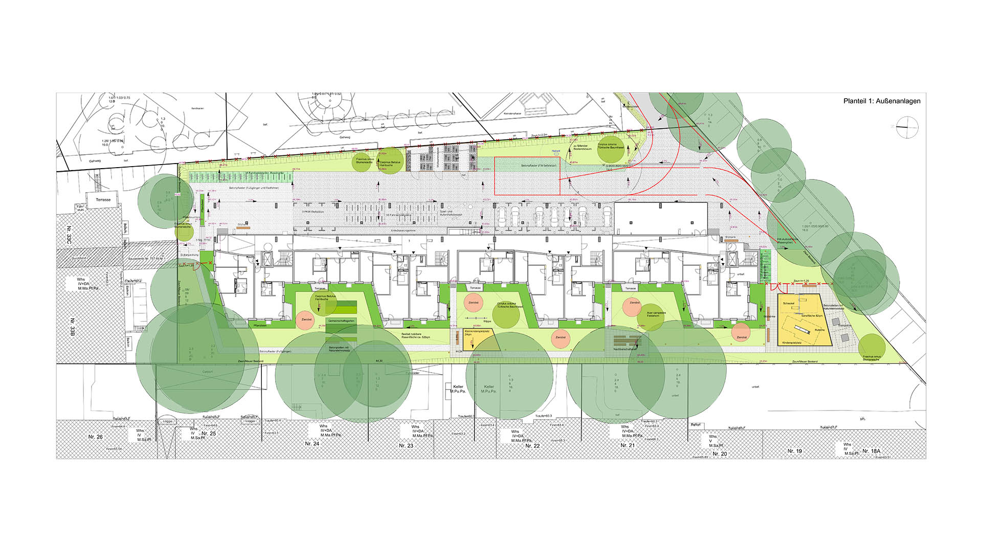 Gestaltungen Freianlagen für einen Wohnungsneubau