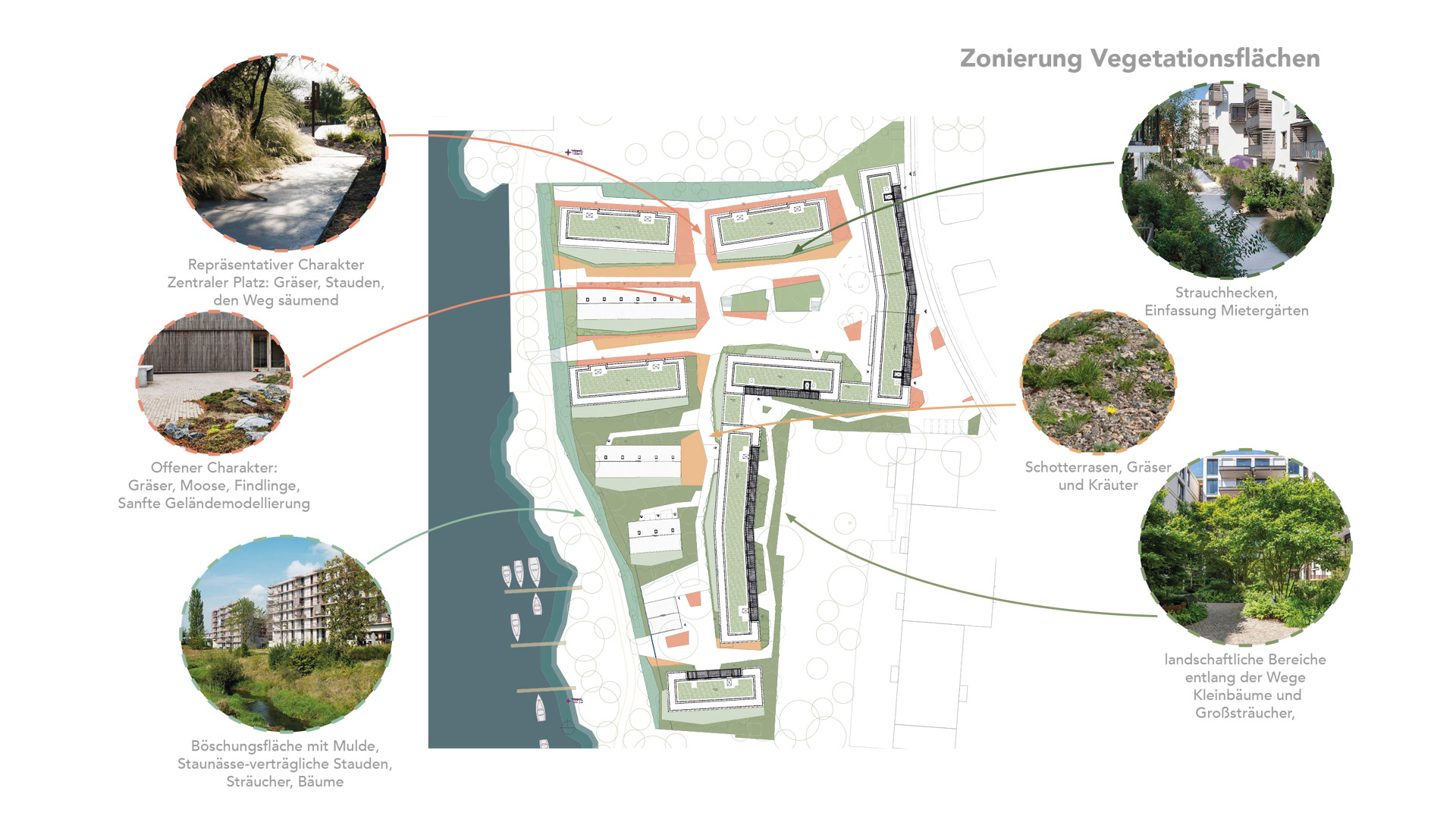 Es entsteht eine nachhaltig und architektonisch wie funktional anspruchsvolle Neubebauung für das Spandauer Grundstück, um damit der rasant wachsenden Nachfrage einer breiten Mitte der Bevölkerung nach hochwertigem und zugleich bezahlbarem Wohnraum in der Stadt nachzukommen. Die Neubauten werden als Zeilenhäuser, Gartenhäuser und Bootshäuser konzipiert. Die Freianlagen unterstützen das architektonische Konzept der Neubebauung.