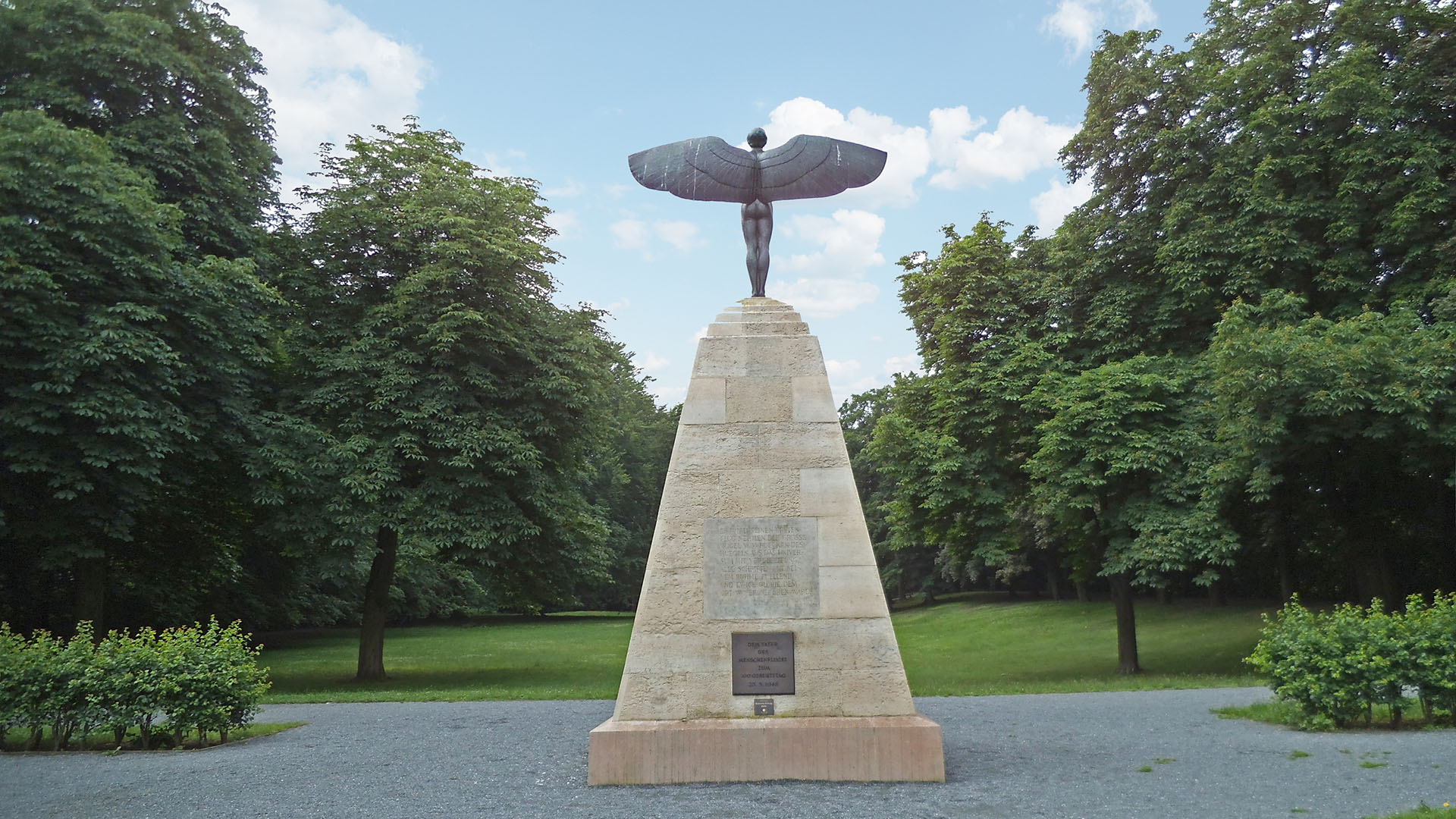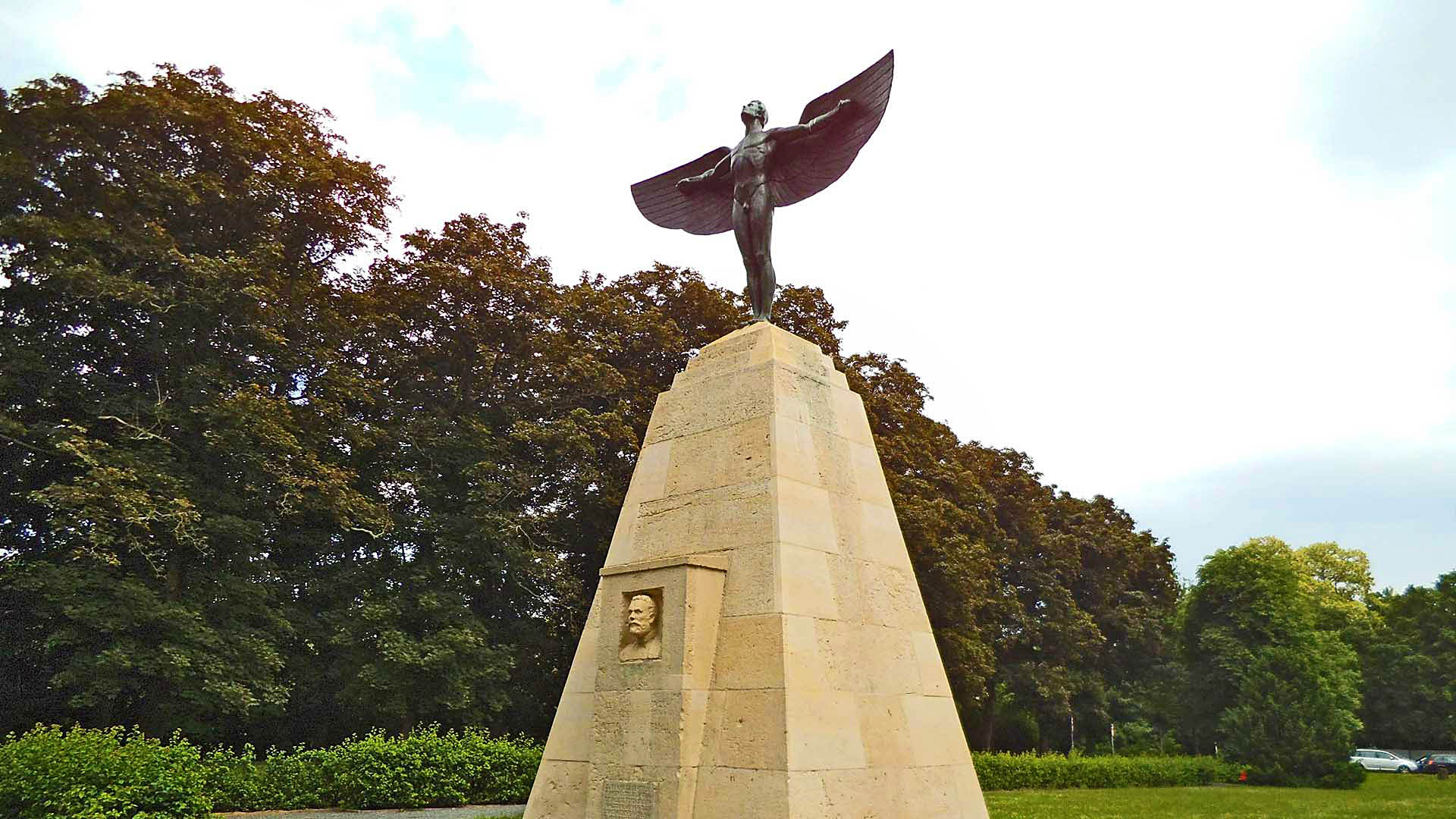 Das Denkmal für Otto Lilienthal wurde nach einem vorangehenden Wettbewerb im Auftrag Lichterfelder Bürger nach Entwürfen des Bildhauers Peter Christian Breuer (1856-1930) errichtet und am 21. Juni 1914 eingeweiht. Das Gartendenkmal Eduard - Spranger - Promenade - in dessen nördlichem Abschnitt das Denkmal liegt - wurde in diesem Abschnitt als formale Schmuckanlage und Stadtpark zur Präsentation des Denkmals angelegt. Die lebensgroße Bronzefigur des Ikarus steht auf einem mehr als fünf Meter hohen Natursteinsockel. Dieser ist aus einer Lage Granitblöcken und weiteren sich darüber pyramidal verjüngenden Lagen aus Sandstein aufgebaut. Mit der Restaurierung wurde das Denkmal gesäubert, die weitere Verwitterung und Korrosion wurden gestoppt und Schäden beseitigt. Fehlstellen wurden ergänzt und technisch nicht passende Materialien aus früheren Maßnahmen wurden beseitigt. Das Denkmal präsentiert sich nun wieder in einem repräsentativen Zustand.