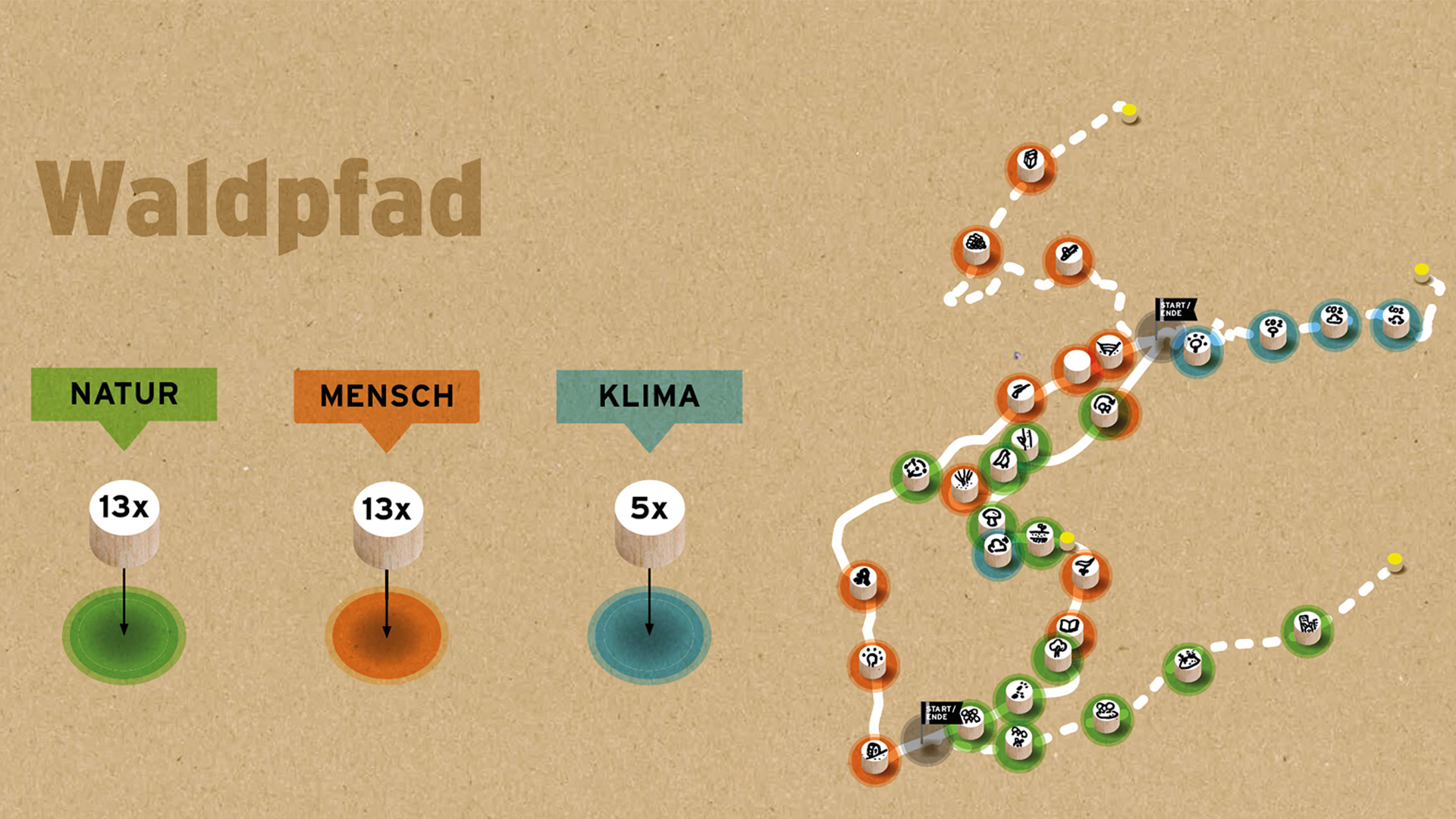 Darauf aufbauend konnten beim zweiten Workshop die Inhalte der einzelnen Stationen genauer untersucht werden: Nach dem Herausarbeiten und Zuordnen der Kernzielgruppen auf die drei Pfade, ging es um die Definition einer Station sowie um ihre inhaltlichen Standards. Die vier Typen Natur-, Mensch-, Klimastation und Begrüßungspunkt konnten lokalisiert und die einzelnen Bausteine „Infoträger“, „Aktionselemente“ und „bauliche/digitale Extras“ definiert werden.