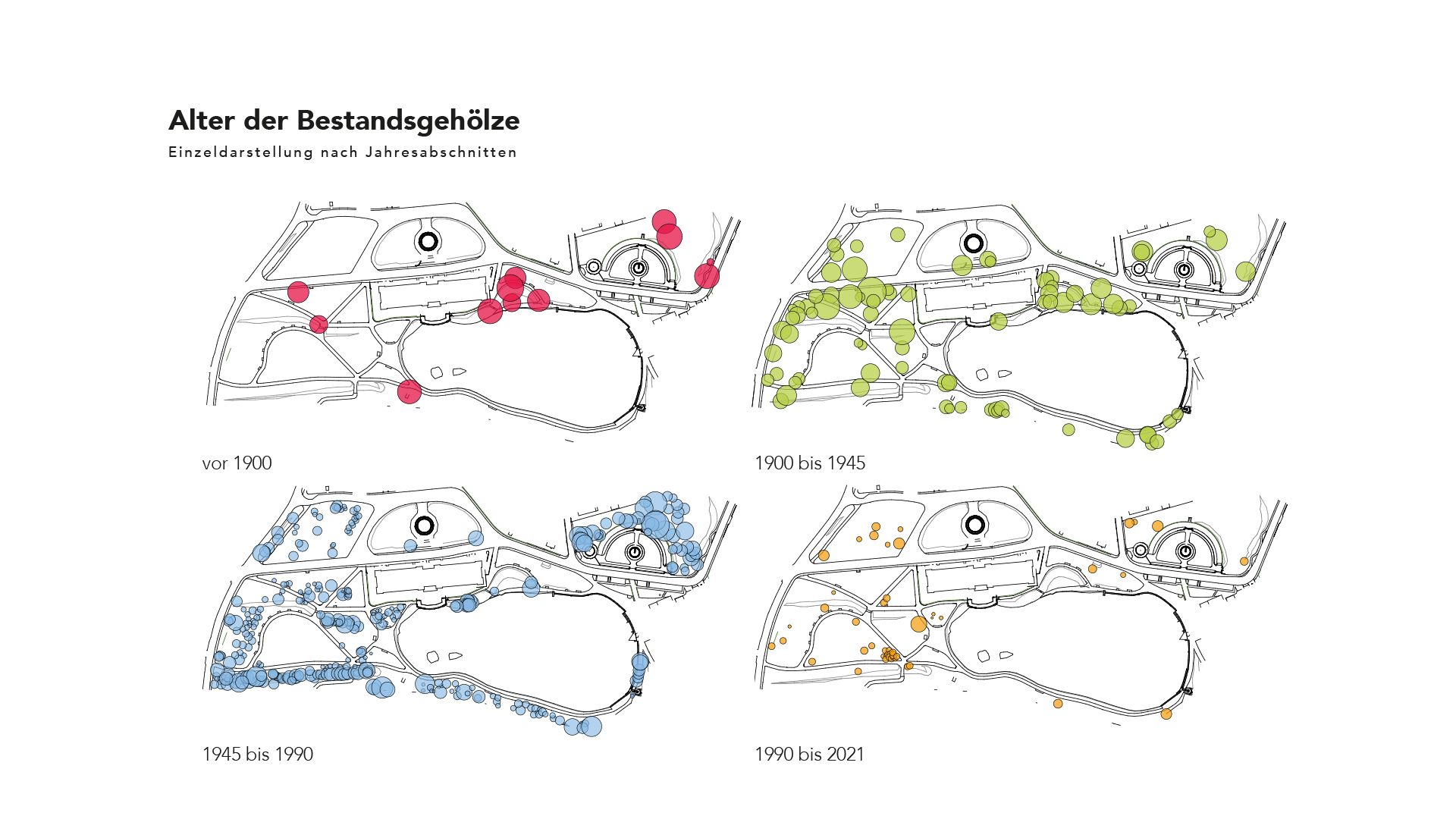 Für eine denkmalgerechte Nachpflanzung werden Baumarten aufgeführt, die besonders trockenheits- und hitzeresistent sind und den Charakter der Parkanlage stützen.