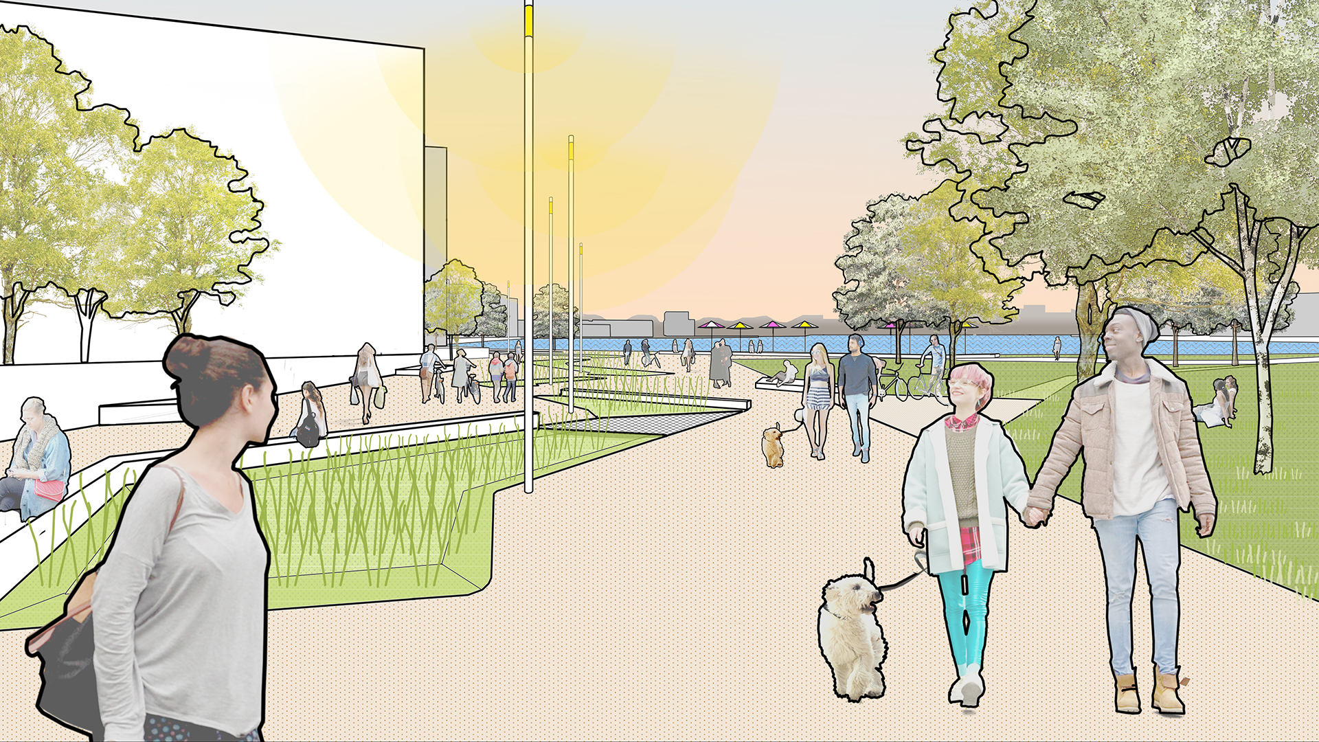 Mit dem Konzept eines grünen Mäanders, der sich vom Ostkreuz bis zur Rummelsburger Bucht schlängelt, wird eine Wahrnehmung des Wassers von der Rummelsburger Bucht bis ans Ostkreuz getragen.